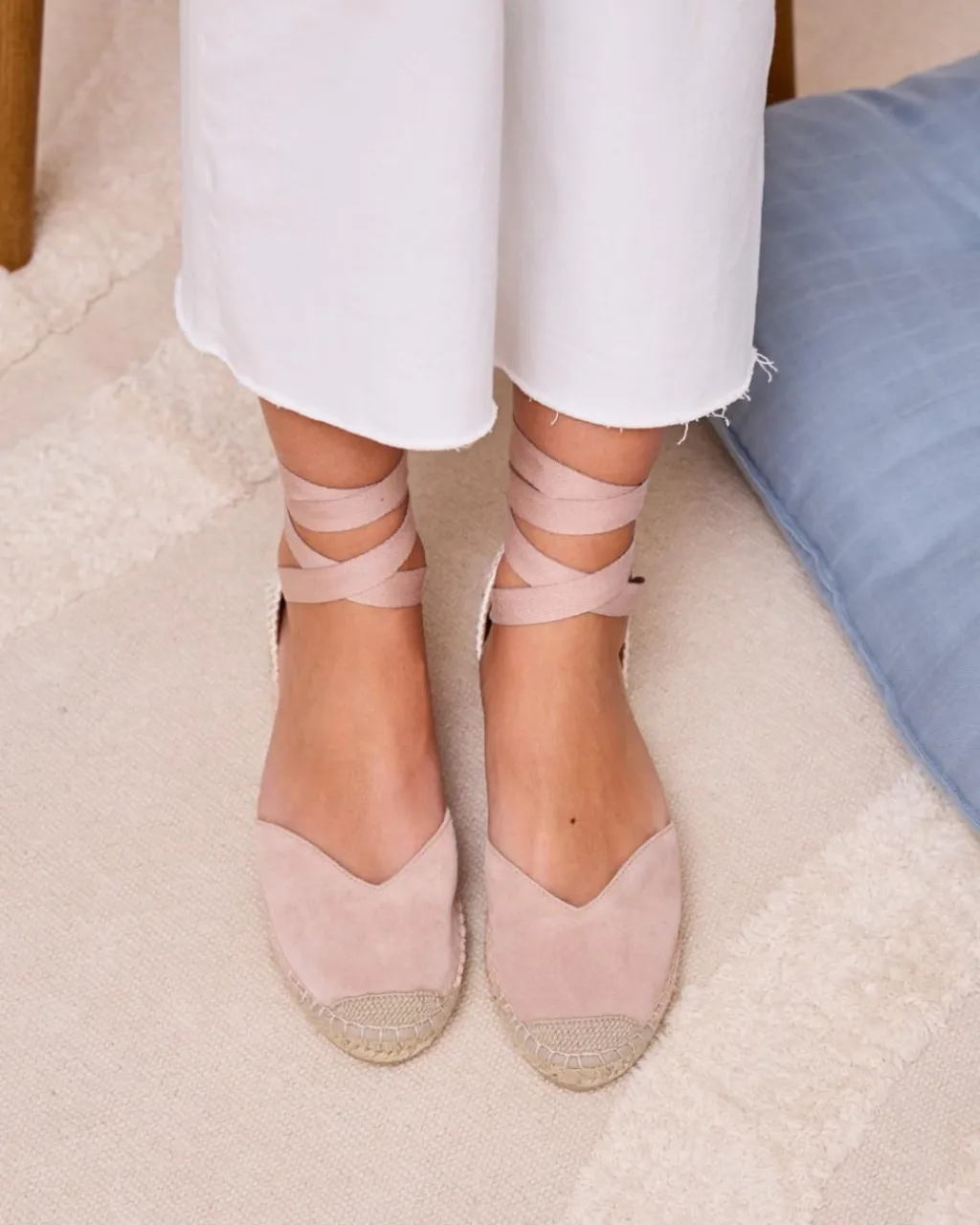 Alpargata plana en color taupe. Punta ligeramente puntiaguda con detalle de serraje. Sujeción al tobillo mediante cintas al tobillo. Escote corazón. Fabricación española de yute natural. La plantilla tiene una almohadilla para mayor comodidad. Una alpargata perfecta para todo el día e ideal para combinar con tus jeans favoritos.