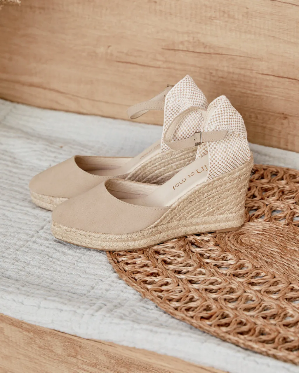 Alpargata de piel de serraje en color piedra. Puntera ligeramente en punta y escote más bajo, a la altura de los dedos. Diseño de cuña con cierre mediante una tira en el mismo tejido y hebilla lateral. Talonera cosida con hilo y esparto. Fabricación artesana de yute natural. Plantilla de la alpargata con almohadilla para mayor comodidad. Un diseño tradicional y versátil para completar tu look. Diseñado y fabricado en España.