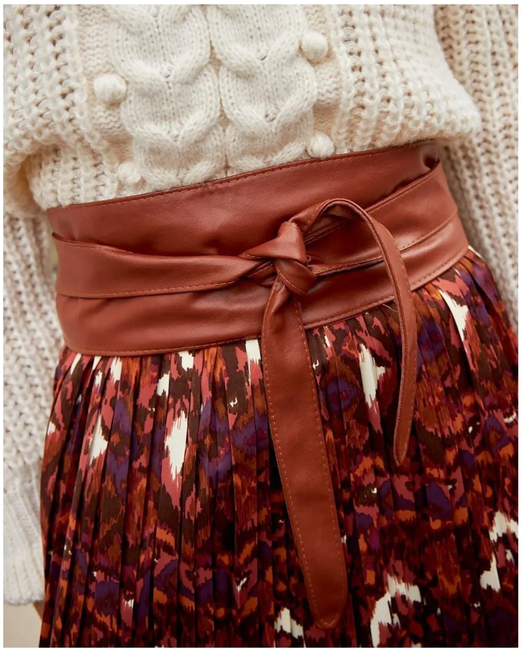 Cinturón en color cuero. Cinturón a modo de fajín en color marrón cuero, ajustable mediante lazada. Un cinturón diferente con el que darle ese toque diferenciador a tus looks.