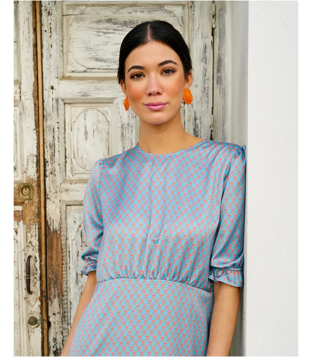 Polin et moi FERIA>Vestido Flores Lucía CELESTE