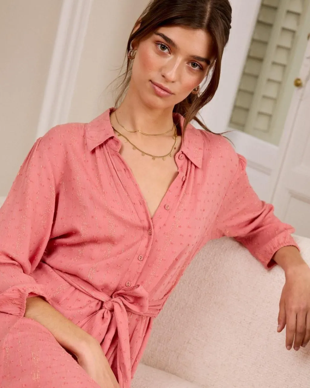 Vestido largo camisero con detalle de lunares bordado. Vestido con cuello de camisa. Hilera de botones desde el cuello hasta el bajo. Cinturón a juego en la cintura. Manga larga recta. Falda larga y ligero vuelo. Vestido ideal para la lactancia y primeros meses de embarazo. Ver másVer menos Referencia 180216 COMPOSICIÓN Y MEDIDAS:60% Poliester, 40% ViscosaTrinity mide 1,74 cm y lleva la talla S. Si dudas con la talla te recomendamos usar el recomendador online.CUIDADOS:Lavar a mano máximo a 30º. Ficha técnica Colores ROSAS Etiquetas: GOA SPECULOS – ENVÍOS, CAMBIOS Y DEVOLUCIONES Favorito46 ENVÍOS:Todos los envíos cuentan con gastos de envío, que dependen de la dirección de entrega.• Península y Portugal: 3,50€ | 2-4 días laborables.• Baleares: 6,50€ | Hasta 7 días laborables.• Países de la Unión Europea: 10,95€ | Hasta 10 días laborables.• Envíos a Europa (No UE): 15,95€ | Hasta 10 días laborables.• Resto del mundo*: Aprox 10€ | Hasta 15 días laborables.*NO hacemos envíos a Canarias, Ceuta, Melilla, Afganistán, Bielorusia, Congo, Bali, Myanmar, Nigeria, Rusia, Senegal, Somalia y Ucrania.¡Importante! En periodo de rebajas, los pedidos pueden tardar un poco más de lo habitual ¡Rogamos paciencia!CAMBIOS: ¡El envío con el cambio solicitado es gratuito!Pedidos realizados desde España:Plazo de 14 días laborables desde que recibes el paquete en casa.Pedidos realizados desde fuera de España:Plazo de 20 días naturales desde que realizamos el envío.*La gestión del envío del paquete de vuelta a nuestro almacén corre a cuenta del cliente, haciéndose cargo de los costes de este envío, mediante el courier de su elección o con nuestro servicio de DHL.En el primer trámite de cambio, el envío de vuelta es gratuito (tanto de talla como de producto). Permitimos DOS trámites de cambio, en caso de querer tramitar un segundo cambio, se descontarán los gastos de envío según destino.Una vez recibido el paquete en nuestro almacén, tramitaremos tu cambio en un plazo máximo de hasta 10 días laborables. Recibirás un correo de confirmación cuando este pedido de cambio esté listo para ser enviado.