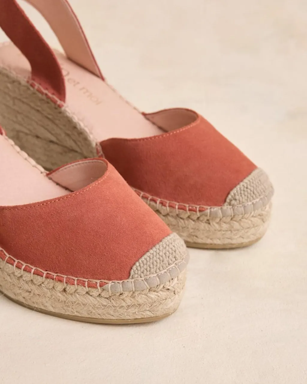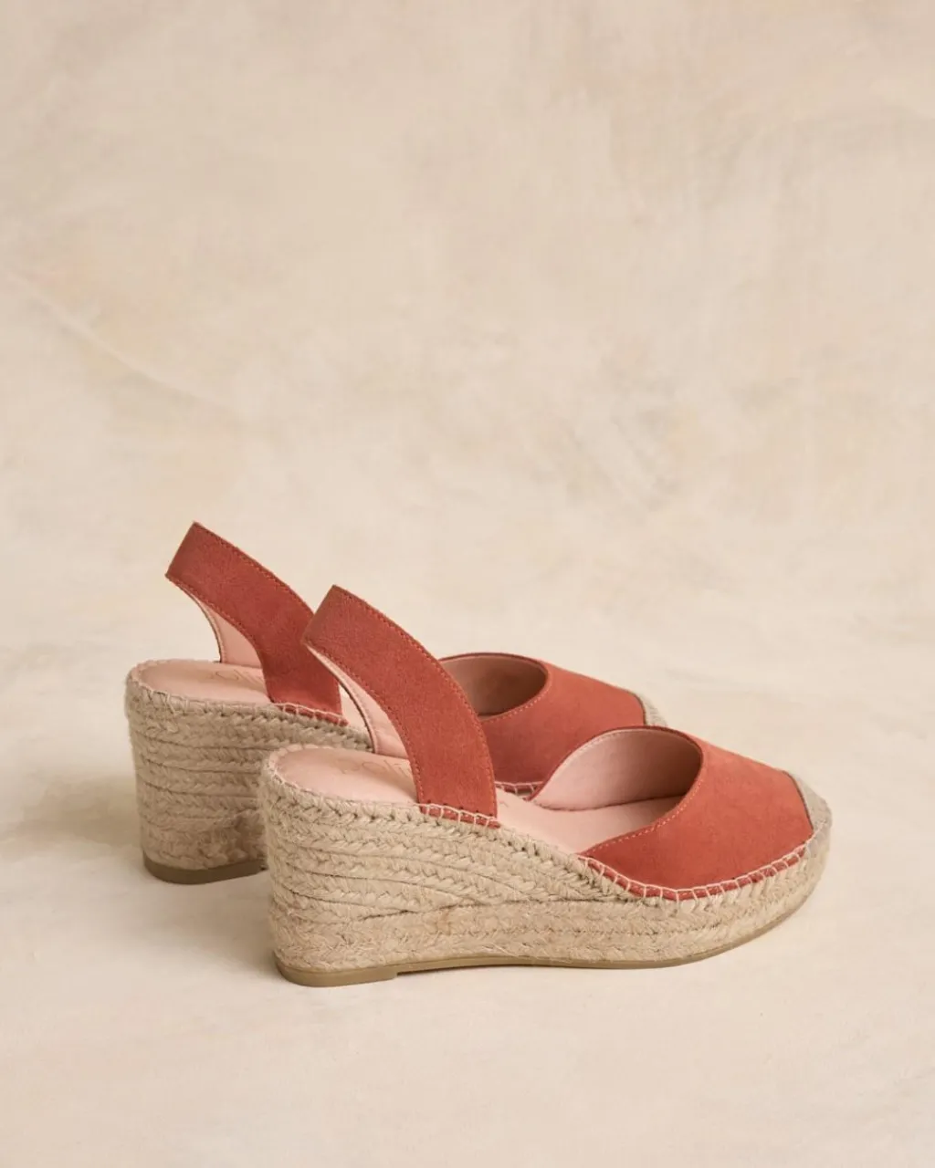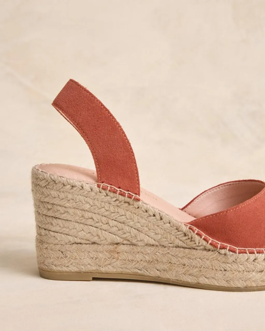 Alpargata alta destalonada en color mango. Puntera redondeada con la punta de esparto. Escote redondeado. Cierre en el talón con una tira ancha. Cuña de esparto. Un zapato muy femenino y cómodo para crear looks.