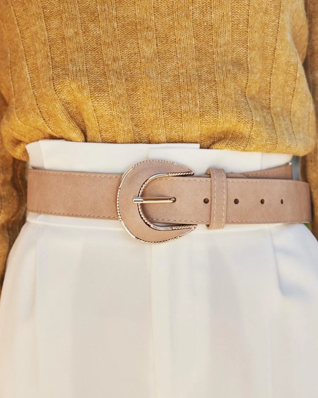 Cinturón en color camel con detalle de hebilla en este mismo tono y dorado. Material de ante delantero. Cierre mediante hebilla central con textura irregular. Ideal para combinar con y jeans favoritos de esta temporada. Ver másVer menos Referencia 178298 Ficha técnica Colores BEIGE ENVÍOS, CAMBIOS Y DEVOLUCIONES Favorito17 ENVÍOS:Todos los envíos cuentan con gastos de envío, que dependen de la dirección de entrega.• Península y Portugal: 3,50€ | 2-4 días laborables.• Baleares: 6,50€ | Hasta 7 días laborables.• Países de la Unión Europea: 10,95€ | Hasta 10 días laborables.• Envíos a Europa (No UE): 15,95€ | Hasta 10 días laborables.• Resto del mundo*: Aprox 10€ | Hasta 15 días laborables.*NO hacemos envíos a Canarias, Ceuta, Melilla, Afganistán, Bielorusia, Congo, Bali, Myanmar, Nigeria, Rusia, Senegal, Somalia y Ucrania.¡Importante! En periodo de rebajas, los pedidos pueden tardar un poco más de lo habitual ¡Rogamos paciencia!CAMBIOS: ¡El envío con el cambio solicitado es gratuito!Pedidos realizados desde España:Plazo de 14 días laborables desde que recibes el paquete en casa.Pedidos realizados desde fuera de España:Plazo de 20 días naturales desde que realizamos el envío.*La gestión del envío del paquete de vuelta a nuestro almacén corre a cuenta del cliente, haciéndose cargo de los costes de este envío, mediante el courier de su elección o con nuestro servicio de DHL.En el primer trámite de cambio, el envío de vuelta es gratuito (tanto de talla como de producto). Permitimos DOS trámites de cambio, en caso de querer tramitar un segundo cambio, se descontarán los gastos de envío según destino.Una vez recibido el paquete en nuestro almacén, tramitaremos tu cambio en un plazo máximo de hasta 10 días laborables. Recibirás un correo de confirmación cuando este pedido de cambio esté listo para ser enviado.
