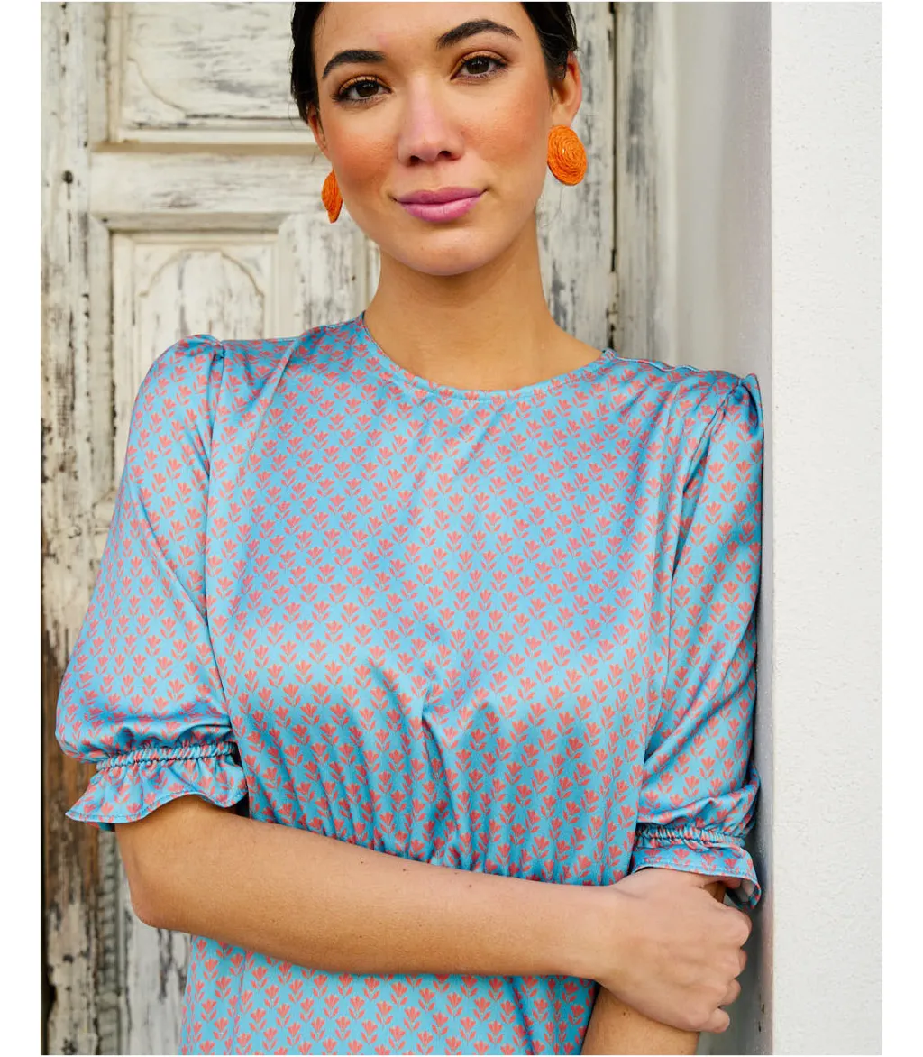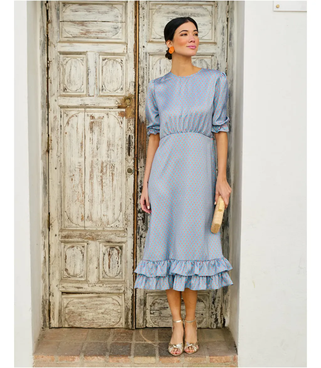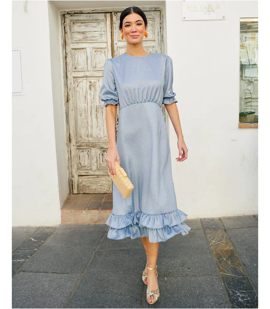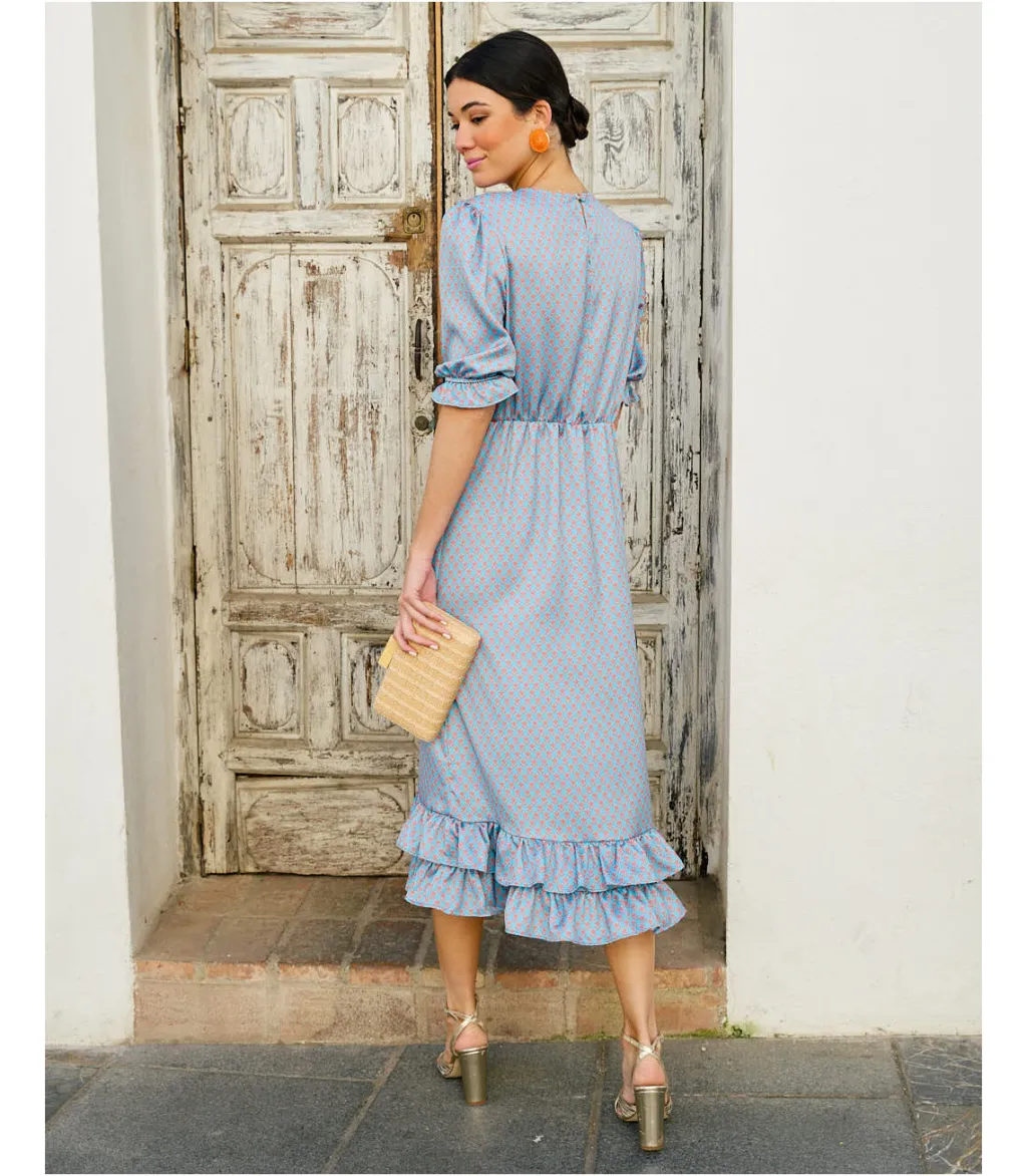 Polin et moi FERIA>Vestido Flores Lucía CELESTE