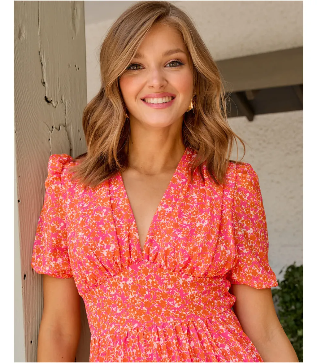 Polin et moi VESTIDOS INVITADA>Vestido Flores Anaisa NARANJA